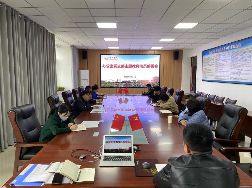 为深入开展学习贯彻习近平新时代中国特色社会主义思想主题教育,2023年4月24日下午,办公室在逸夫楼504会议室召开了学习贯彻习近平新时代中国特色社会主义思想主题教育动员部署会,会议由办公室党支部书记、办公室主任岳尧主持。